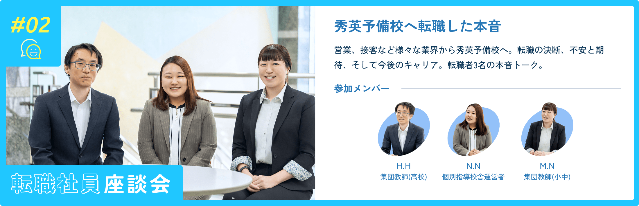 複数の視点から見た秀英の姿を通じて、あなたに合った働き方を見つけてください。