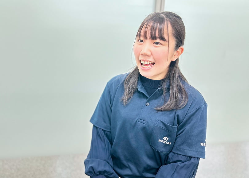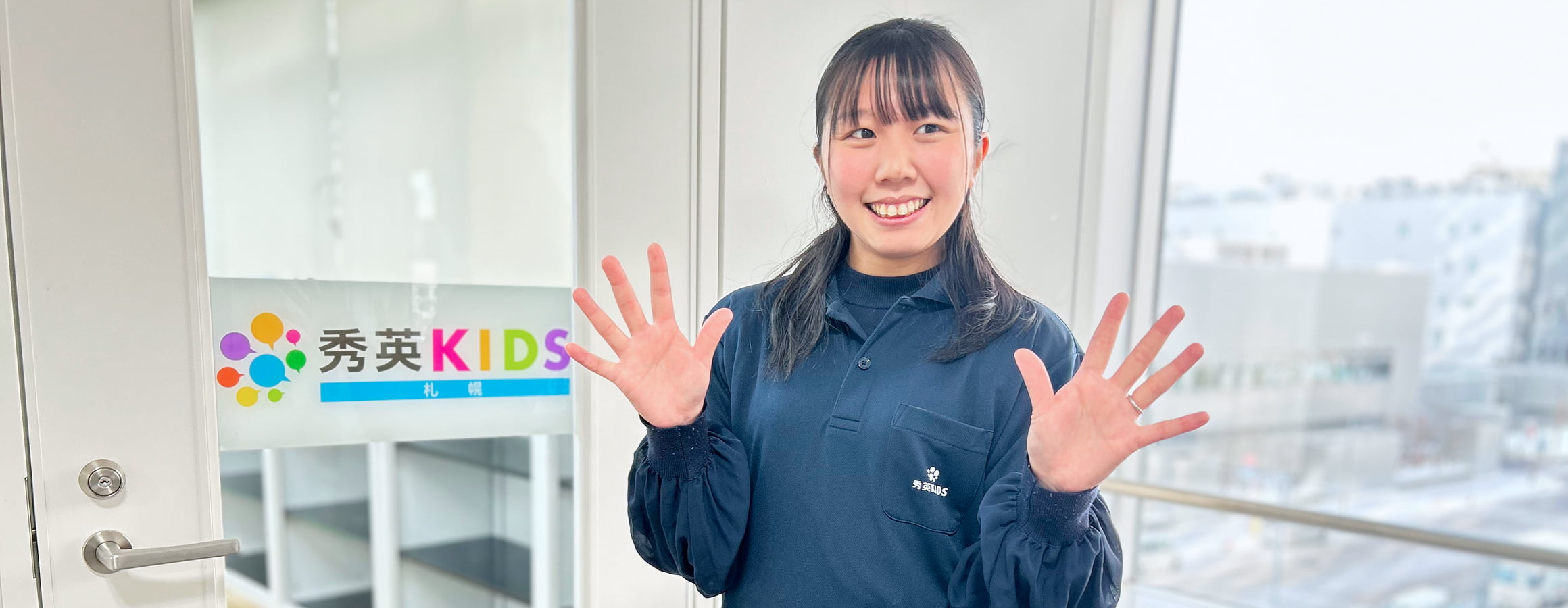 大学生のときに、まだ立ち上がったばかりの秀英KIDSでアルバイトを始めました。企業主導型や英語系の学童は増えていますが、秀英は人を育てることを大切にしていて、協調性や社会性も教えつつ、勉強も幅広く見てあげられるところに魅力があります。就職活動では他社も比較しましたが、合格率や塾生数などの数値よりも、秀英には人を育てるという理念が根づいていると違いを感じました。実際、子どものことを熱く語る先生がどの部署にもいるんですよ。