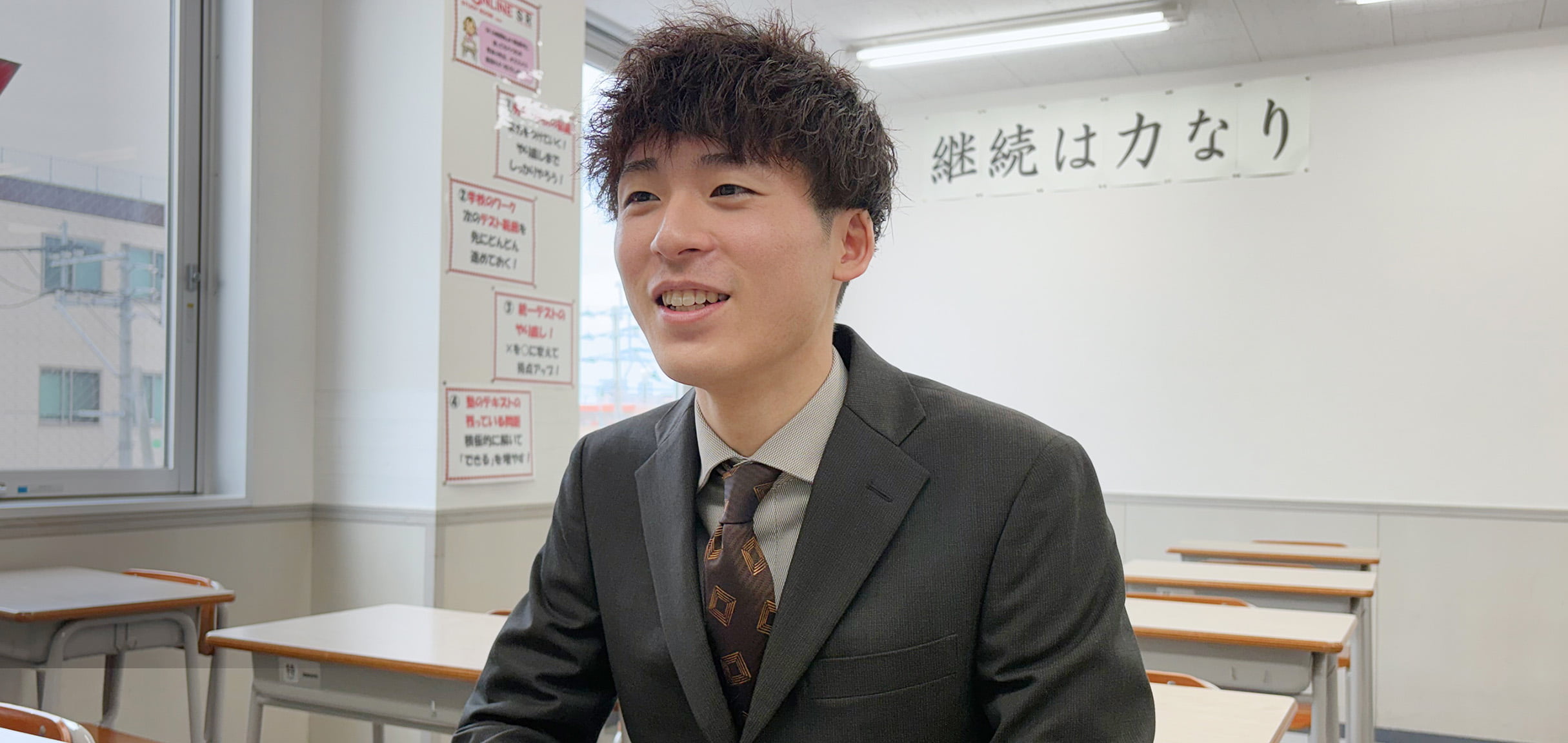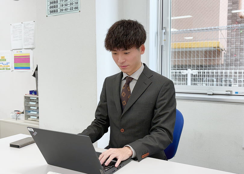 やりがいを感じるのは生徒の成績が上がるのが目に見えて分かるところです。成績が上がったり志望校に合格したりして、生徒や保護者から感謝の言葉を言われるのは本当にうれしいです。室長になって校舎のマネジメントや保護者会などやることが増え、大変な部分もありますが、楽しさ、面白さはずっと感じています。分からないことは先輩たちに聞くと、みんな気軽に教えてくれます。コミュニケーションがとりやすく、すごくいい環境だと思います。