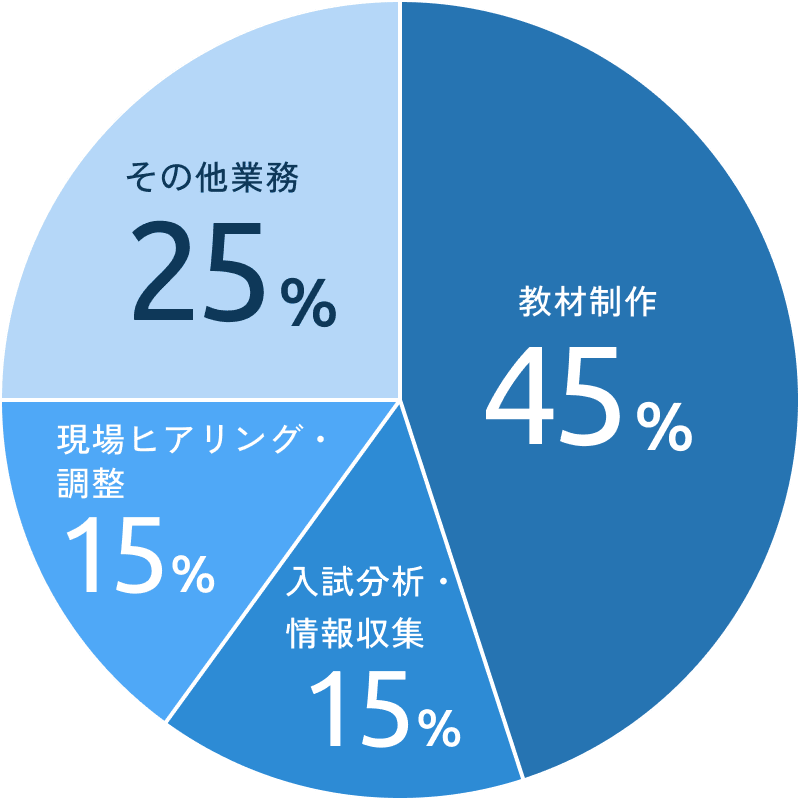 模試や教材の作成・監修、入試問題の傾向分析など、生徒の学びを支える“教材づくりのプロフェッショナル”としての業務を担っています。